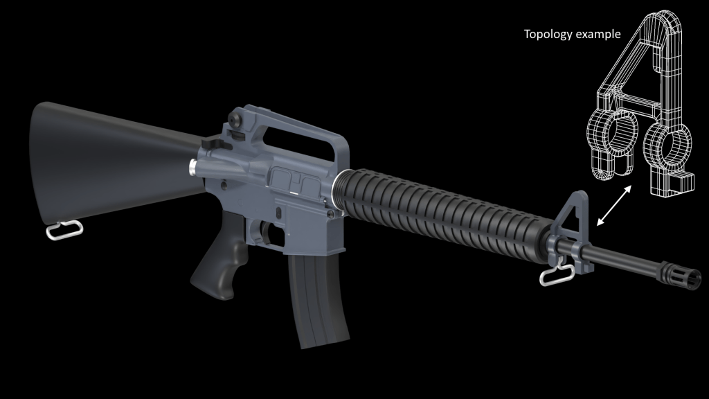 Hard surface modeling study of an M16 A2 with a focus on quad topology. The main reference image used came from Wikipedia.