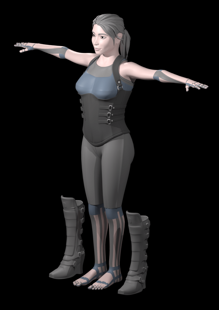 I modeled this from the Blenderella training video from the Blender Studio website. I finished the feet myself because in the lesson, the reference model was wearing high-heeled boots and the lesson did not model the feet.